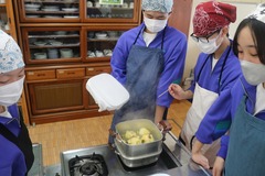 2年生は家庭科の時間に調理実習を行いました。今回は「蒸しパン」をつくりました。さつまいもを細かく切って混ぜており、甘くおいしく仕上がったようです。